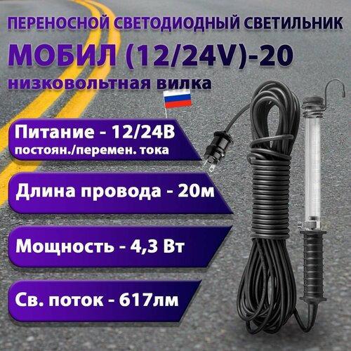 Переносной светодиодный светильник мобил (12/24V)-20 (низковольтная вилка)