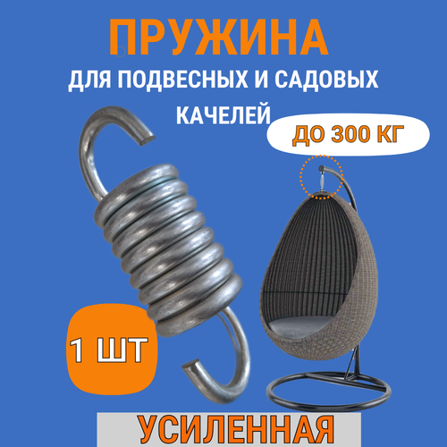 Пружина для качелей садовых усиленная С удлиненным крючком , подвесного кресла кокон, металлическая, 1шт