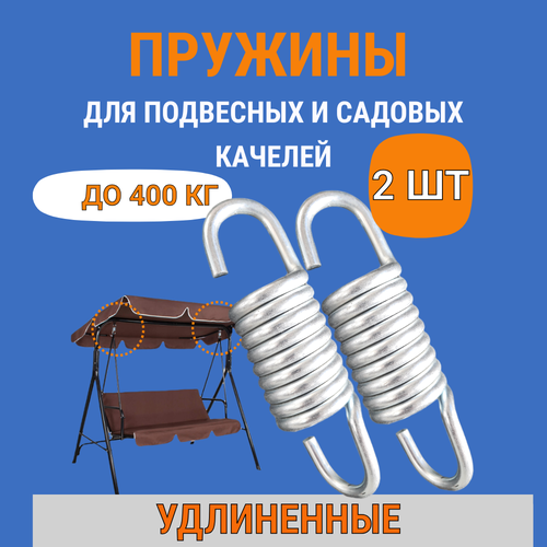 Пружины для качелей садовых усиленные С удлиненным крючком , подвесного кресла кокон, металлические, 2шт