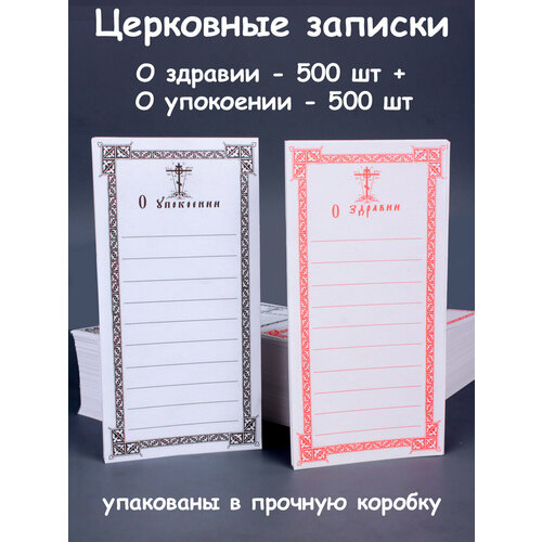 Записки церковные о здравии 500 шт + о упокоении 500 шт. В коробке