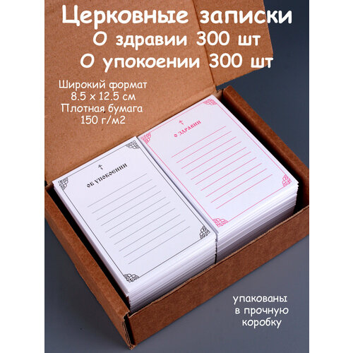 Записки церковные о здравии 300 шт + об упокоении 300 шт, плотные, широкие