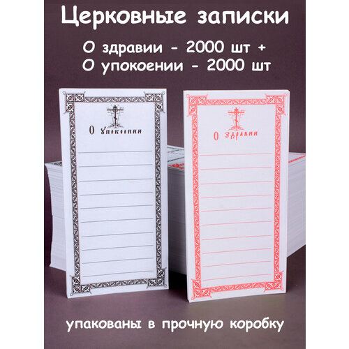 Записки церковные о здравии 1000 шт + о упокоении 1000 шт. В коробке