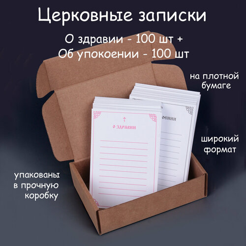 Записки церковные о здравии 100 шт + об упокоении 100 шт, плотные, широкие