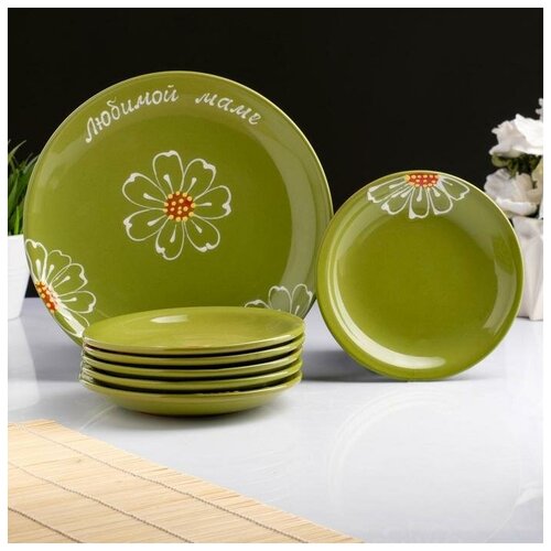 Набор для блинов "Любимой маме" 7 предметов, зелёный
