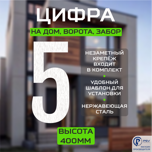 Цифра (номер) из металла на дом/ворота/забор, 5F, H400 мм