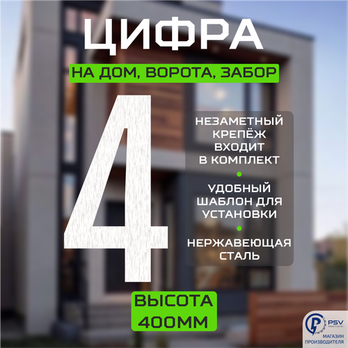 Цифра (номер) из металла на дом/ворота/забор, 4F, H400 мм