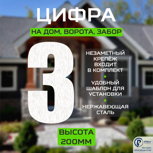Цифра (номер) из металла на дом/ворота/забор, 3I, H200 мм