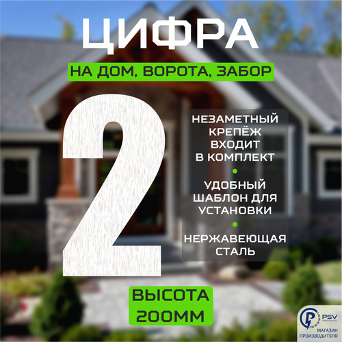 Цифра (номер) большая из металла на дверь/ дом/ворота/забор, 2I, H400 мм