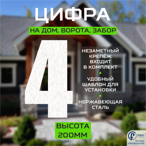 Цифра (номер) из металла на дом/ворота/забор, 4I, H200 мм