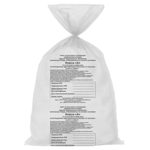 Пакеты для медицинских отходов ПТП Киль класс А 70x80 см 60 л 100 шт