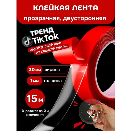 Скотч двухсторонний 5 шт по 3м - клейкая лента двусторонняя ширина 30мм, прозрачная акриловая
