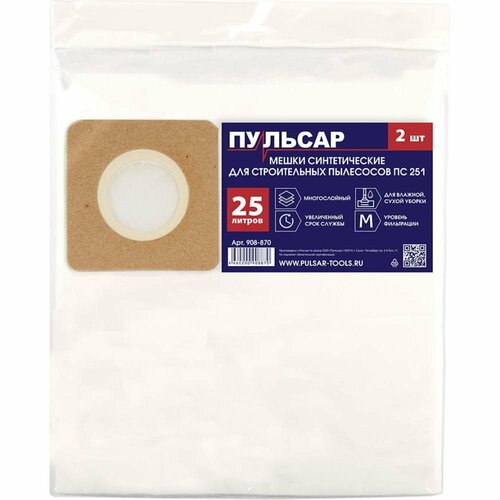 Мешок синтетический 25 литров, 2 шт для пылесоса ПС 251 Пульсар 908-870