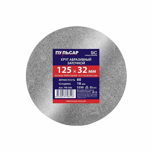 Диск абразивный для точила пульсар 125 х 32 х 16 мм F 60 серый (SiC) + кольца переходные