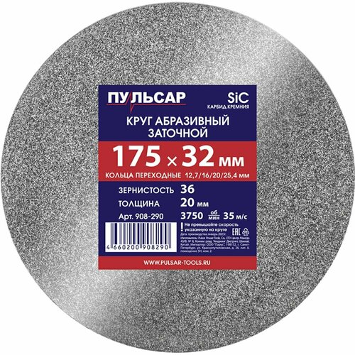 Диск абразивный для точила 125х32х16 мм F 36 серый (SiC) + кольца переходные Пульсар 798-539