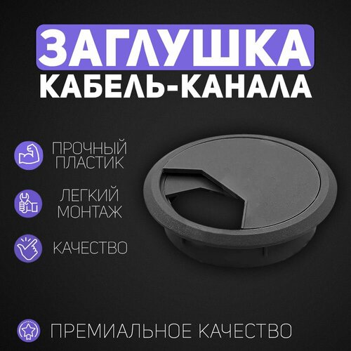 Пластиковая круглая заглушка для кабель-канала d60 мм (Черная) - 2 ШТ