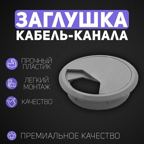 Пластиковая круглая заглушка для кабель-канала d60 мм (Серая) - 2 ШТ