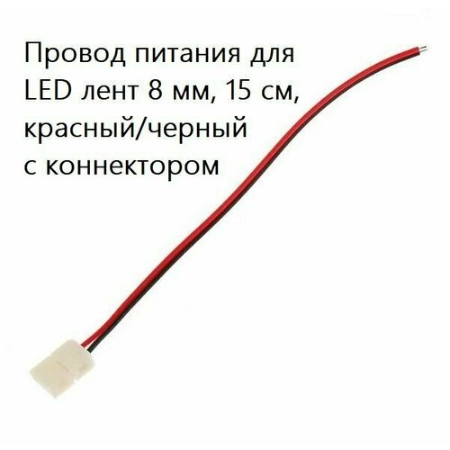 Провод питания для LED лент 8 мм, 15 см, красный/черный с коннектором