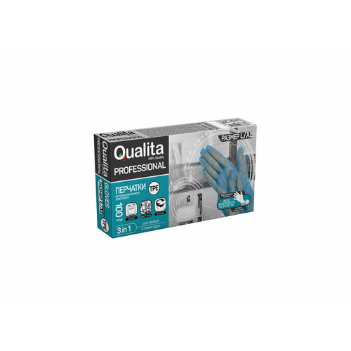 Перчатки хозяйственные QUALITA из термопластэластомера L/XL голубые 100 шт/упак.