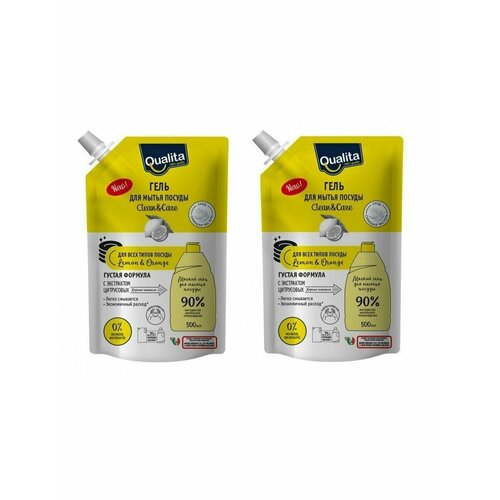 QUALITA Средство для мытья посуды LEMON&ORANGE дой-пак 500мл 2шт