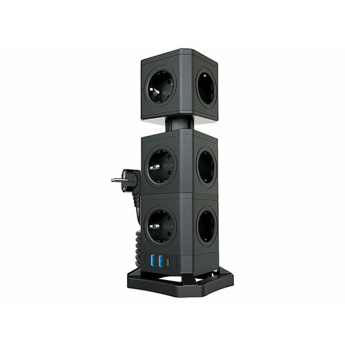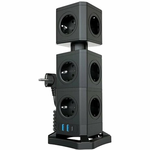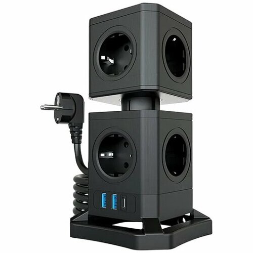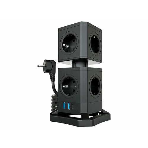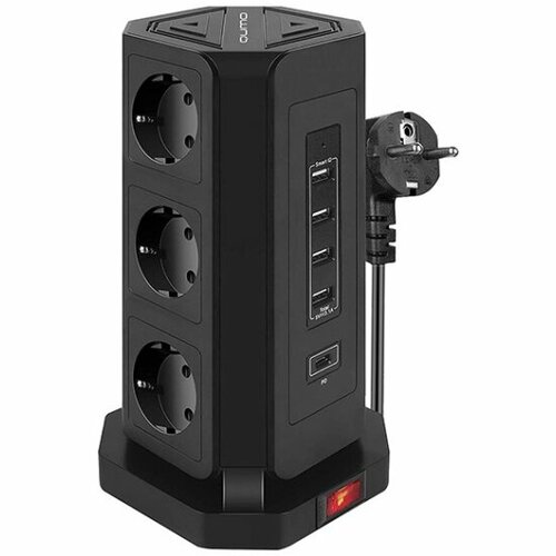 Сетевой фильтр QUMO Power Tower Pro PD 8SP4U (P-0004), 9 розеток, 4xUSB, USB-C, 2500 Вт, 10А, 2м Черный 42086