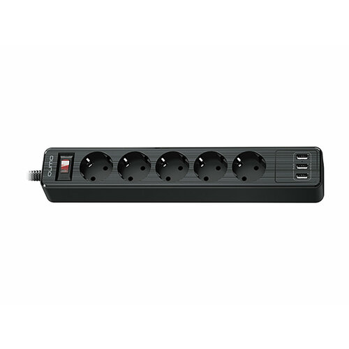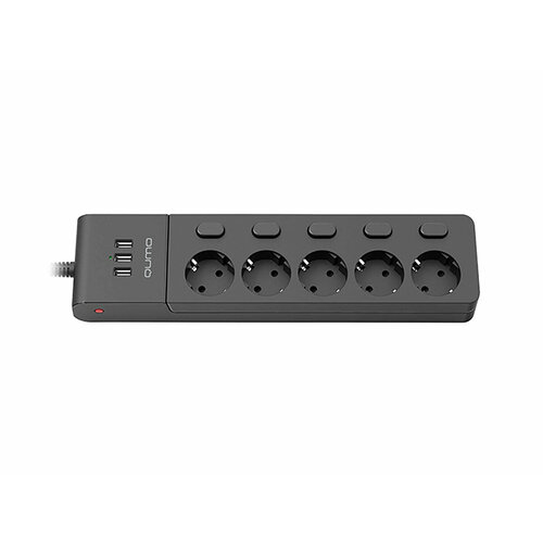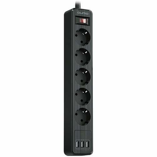 Сетевой фильтр QUMO Power Bar 5SP4U (P-0005), 5 розеток, 3xUSB, 2500 Вт, 10А, 2м Черный 42090
