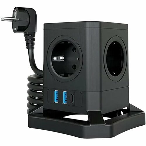 Сетевой фильтр QUMO Power Block System PD1+1 12SP5U (P-0003), 9 розеток, 2xUSB, USB-C, 2500 Вт, 10А, 2м Черный 42088