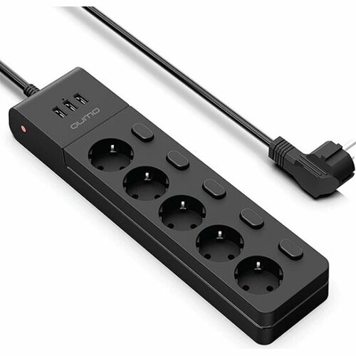 Сетевой фильтр QUMO Power Bar PRO 6SP4U (P-0006), 5 розеток c выключателем, 3xUSB, 2500 Вт, 10А, 2м Черный 42091