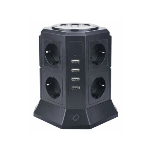 Сетевой фильтр Qumo Power Tower Pro,4xUSB, 8 розеток, 2м black