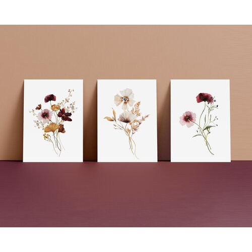 Набор из 3х открыток, постеров 10х15 см. Без рамы. Премиальная бумага с фактурой льна и 3 крафтовых конверта. Эстетичные полевые цветы.