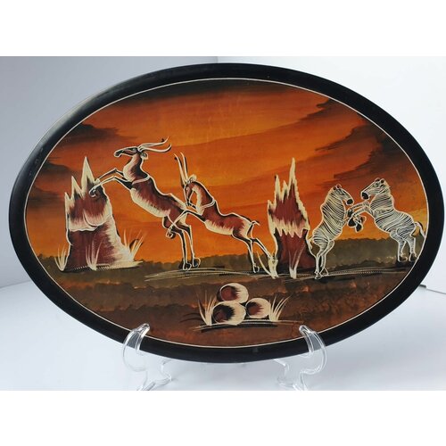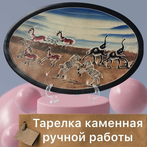 Круглое Каменное Декоративное блюдо Ручной Работы "Животный мир Африки"