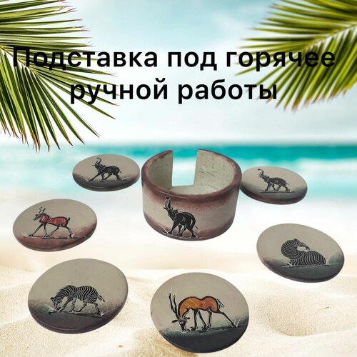 Каменная Подставка под горячее ручной работы "Африканские Мотивы" №4