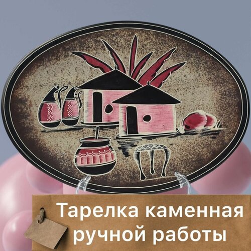 Каменное Декоративное блюдо Ручной Работы "Африканские хижины и утварь" №7