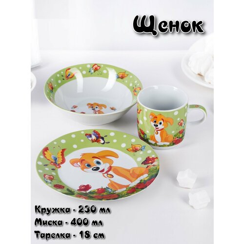 Набор детской посуды, Щенок, 3 предмета