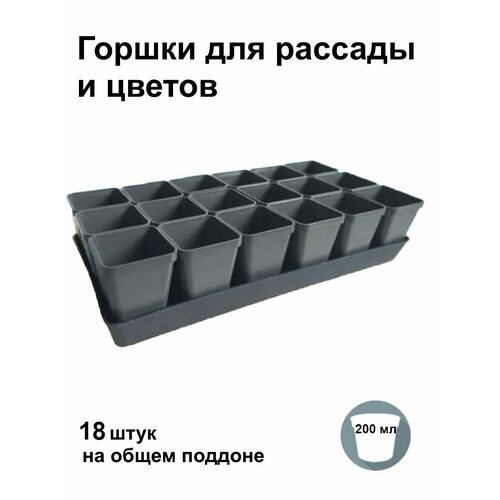Набор горшков для рассады, 18 шт на поддоне, по 200 мл Серый