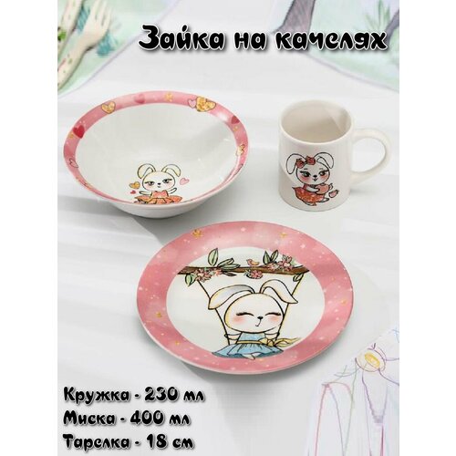 Набор детской посуды, Зайка на качелях, 3 предмета 100042995415