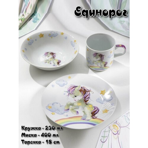 Набор детской посуды, Единорог New, 3 предмета 100042995414