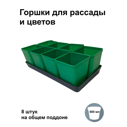 Набор горшков для рассады, 8 шт на поддоне, по 600 мл Зеленый