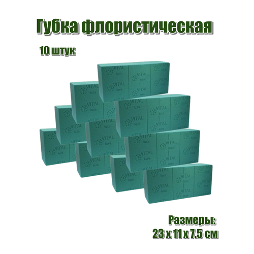 Губка флористическая (основа, пена), 23 х 11 х 7,5 см, 10 штук