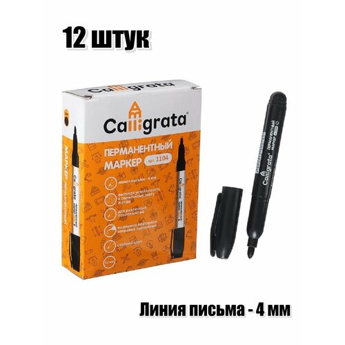 Маркер перманентный, цвет черный, толщина линии - 4 мм, 12 шт.