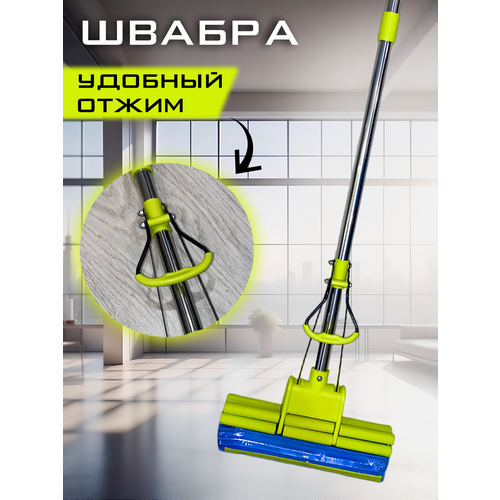 Швабра с отжимом, губка ПВА , стальная ручка(117см)