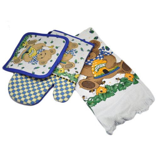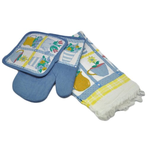 Кухонный набор из хлопка полотенце, ухватка-перчатка и прихватка