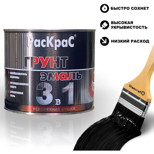 Грунт-эмаль "3 в 1" РасКрас черная 21 кг 4690417021130