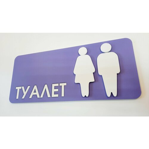 Табличка туалет с 3д эффектом выпуклые фигуры фиолетовая