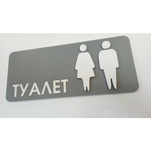 Табличка туалет с 3д эффектом выпуклые фигуры серая