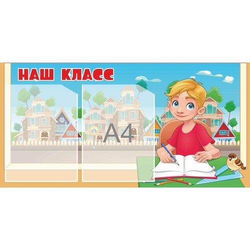 Стенд "Наш класс" 40х80см 2 кармана А4 мальчик