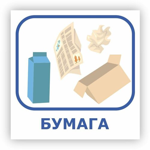 Табличка "Раздельный сбор мусора - Бумага" 25х25см