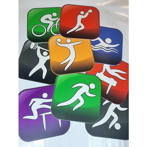 Таблички "Спортивные состязания" 30х30см 9шт пластик