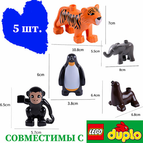 Набор 5 фигурок игрушек животные совместимые с лего дупло