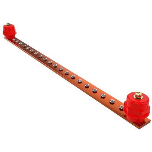 Шина заземления медная 19" с изоляторами на 20 точек подключения, габариты 483х4х20 мм.