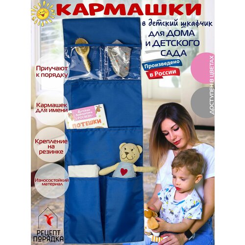 Кармашки-органайзер на дверцу шкафчика, для детского сада, дома василькового цвета